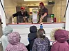 Als es zur großen Pause klingelte, öffnete das Elternpaar Mette Pedersen und Morten Thaysen ihren Würstchenwagen auf dem Schulhof und servierte bei Weihnachtsmusik Fransk Hotdogs als Überraschung für Groß und Klein.