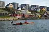 Tradition und Moderne in Nuuk. Das Wort Kajak (Qajaq) stammt aus dem Grönländischen.