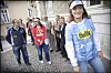 Fußballerin Ida Krusborg, Handballerin Bitten Petz, Handballer René Hansen, Amtsbürgermeister Carl Holst, Eishockeyspieler Jan Jensen und Fußballer Henrik Beck bei der Pressekonferenz im Oktober 2003, als im Amtshof in Apenrade die SønderjyskE-Pläne veröffentlicht wurden