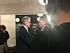 Jørgen Popp Petersen (Schleswigsche Partei) und Poul Erik Kjær (r.) gratulieren sich am Wahlabend. Der Venstre-Politiker wird neuer Vorsitzender des Technischen Ausschusses.