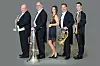 Die Mitglieder der Band "Harmonic Brass" mit ihren Instrumenten. Hans Zellner, Manfred Häberlein, Elisabeth Fessler, Andreas Binder und Alexander Steixner (von links nach rechts).