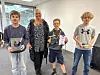 Die drei Erstplatzierten Valdemar Schwartz-Hansen (links), Johan Otten Carstensen und Mathias Friis mit Birte Kristensen (Deutsche Schule Tingleff und Leiterin der Veranstaltung)
