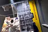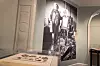 Ein riesiges Foto zeigt Franciska Clausen in Lebensgröße in ihrem Atelierraum