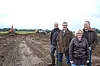 Freuen sich, dass das Anlegen von Tümpeln für die Störche begonnen hat (v. l.). Projektleiter Jesper Toft und die Anrainer Søren Hansen und Else und Alex Andersen, die Fläche für einige der insgesamt 18 geplanten kleinen Seen zur Verfügung stellen.