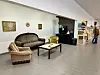 Ein Sofa, das zum Verweilen einlädt, gibt es auch.