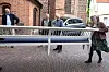 Da packte Gemeinderatsmitglied Anke Haagensen an, während die lächelnden Gentlemen zuschauten. Die schwere Bank des Brorsonhauses wurde beim Fototermin ins Freie getragen.
