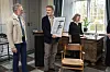 „Ein Tischler schaut mit den Fingern“, sagte der Preisträger, als er den an ihn überreichten Wegner-Esstischstuhl genau ertastete.