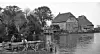 Die Wassermühle in früheren Jahren. Das Mühlengebäude rechts brannte, nur noch das Mühlenhaus blieb bestehen.