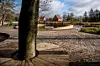 Die Schwebebrücke mit Holzpromenade am Mühlenteich