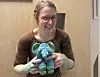 Kursleiterin Jana Surkus mit dem Elefanten „Mimbo Jimbo“, der mitgemalt hat.
