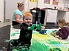 Ein weiterer wichtiger Punkt ist, dass die Aktion nicht länger als eine halbe Stunde dauern sollte, erklärt die Kunstkonsulentin. Es sei für die Kinder sehr spannend, aber auch anstrengend, mit der Farbe zu spielen.