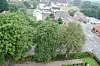 Die Kastanienbäume vom Kirchturm aus fotografiert. Ganz rechts die Kastanie, um die es besonders schlecht gestellt ist. Im Stamm ist ein großer Riss.