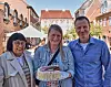 Anne Nielsen (Bildmitte) machte mit ihrer Tortenkreation das Rennen. Links die Oberschiedsrichterin Rosa Kildahl und rechts: Moderator Markus Grigo