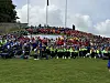 Eine bunte La-Ola-Welle schwappte durch die Mulde auf dem Knivsberg. Schon vor der offiziellen Begrüßung war die Stimmung bei dem Kulturtag der Europeada ausgelassen. Alle Teams hatten sich in ihren Trainingsanzügen versammelt und tauchten die Tribüne in einen bunten Mix.