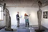 Arthur Mathiesen, Vorsitzender vom „Kunstforening“, und Karin Baum beim Aufbau der Werke.