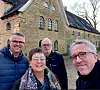 Wollen die Krusauer Wassermühle bewahren und zu einem besonderen kulturhistorischen Komplex machen: (v. l.) Morten Anker Petersen, Anne Midtgaard Jønsson, Knud Erik Jørgensen und Jens Aabjerg von der Denkmalschutzgesellschaft „Danmarks Kutlurarv“.