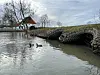 Der Damm an der historischen Mühle des Brundlunder Schlosses ist erst vor zwei Jahren überholt und klimasicher gemacht worden. Trotzdem ist das Gewässer kürzlich über die Ufer getreten und hat Teile des Weges, der am Damm vorbeiführt, überspült und ausgewaschen.