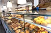 Mehrere Brot-, Brötchen- und Kuchensorten werden angeboten.