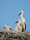 Die drei Jungstörche in der Abenddämmerung
