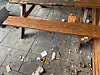 Zigarettenkippen und diverser Verpackungsmüll sowie leere Getränkedosen lagen am Freitagmorgen vor allem im Bereich der Tische und Bänke herum.