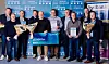 Die Gewinner des Wirtschaftspreises 2025: In der Bildmitte sind die Vertreter von Skærbæk Erhvervspark mit dem Gewinnerscheck über 15.000 Kronen zu sehen. Sie werden eingerahmt von Mitarbeitern von Hartmann Technology (l.) und der Kartoffelmehlfabrik ADK in Toftlund (r.).