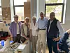 Günter Weitling (sitzend, links) und Hermann Augustin (sitzend, rechts) mit den Gästen. Rechts im Bild steht Pastor Matthias Alpen.