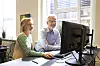 Mathias Güthe mit seiner Kollegin Ulla Svane, die ihm hilft, sich einzuarbeiten.