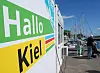 Hallo Kiel» steht an einem Container an der Kiellinie.
