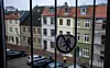 Durch ein vergittertes Hotelzimmerfenster in der ehemalige Jugend-Arrestanstalt können nach dem Umbau zum Hostel „Das Kittchen“ die Übernachtungsgäste auf die Altstadt schauen.
