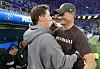 Trainer Alexander Blessin (r, FC St. Pauli) und Trainer Merlin Polzin (Hamburger SV) begrüßen sich vor dem Derby in der Hinrunde. (Archivbild)