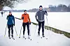 Auf einem verschneiten Weg am Maschsee in Hannover sind drei Langläufer unterwegs.