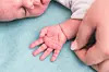 Eine Mutter hält die Hand eines wenige Tage alten Kindes.