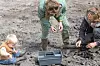 Doch zurück in die Gegenwart: Am vergangenen Donnerstag bricht eine junge Familie aus Groningen – Merel und Jelle Bartelds sowie ihr Sohn, der zweijährige Yde, zum allerersten Mal zur Tongrube auf. Gummistiefel an, Schaufel in die Hand, los geht’s. Die Sonne scheint; der Modder bleibt somit trocken. Es hat seit Tagen nicht geregnet.