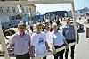 Symbolische Geste: V. l. Hans Otto Ewers, Andreas Welin, A. P. Hansen und Jens Hansen mit dem Rahmen für das Werk zu Ringreiten.