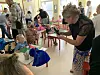 Die musikalische Unterhaltung übernahmen die Erstklässler, die die Neuen mit einem Lied aus Simbabwe willkommen hießen. Ein Geschenk wurde Elisabeth Sørensen gereicht. In dem Paket lag eine Zauberschnur. Mit dieser wurden alle in ihre Klasse geführt.