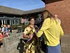 Bevor das Programm in der Aula begann, stand erst noch der Fototermin neben der Aula auf dem Kalender. Bei srahlendem Sonnenschein wurde ausgelassen geredet, gelacht und gespielt.
