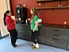 Auch Gomathi Siva Sankaran (links) ist selbstständig und nutzt das Domicilet regelmäßig zum Arbeiten. In der Gemeinschaftskantine können sich alle Nutzerinnen und Nutzer an der Kaffeemaschine bedienen.