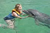 Gertraudt Jepsen schwamm mit Delfinen in der Karibik.
