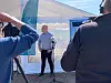Glenn Aagesen von Nordic Solar sprach vor laufenden Kameras beim ersten Spatenstich.
