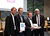 Das Buchprüfungsbüro „Revisionscentret" gehörte zu den 67 Unternehmen, die die CSR-Urkunde entgegennehmen konnten. Das Foto zeigt (v. l.): Bürgermeister Thomas Andresen, Henrik Møller Thorsen und Olaf Krag (beide Inhaber des Büros) und den Arbeitsmarktausschussvorsitzenden Ejler Schütt.
