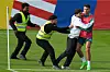 Ein Fan sprintet in Gütersloh auf den Trainingsplatz und umarmt Portugals Superstar Cristiano Ronaldo.