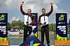 Martin Hiller (l) und Tamas Grossmann freuen sich über EM-Gold im Kajak-Zweier.