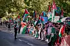 An der Acht-Kilometer-Marke, die noch vor den Fahrern lag, hatten Demonstranten die Absperrungen durchbrochen und belegten die gesamte Straße. Es gab Zusammenstöße mit der Polizei, die nach eigenen Angaben mit 1.500 Kräften im Einsatz war.