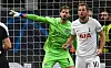 Frankfurts Torwart Kevin Trapp (l) gestikuliert neben Harry Kane von Tottenham.