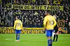 Fra Brøndbys fanafsnit væltede det ind på banen med tennisbolde og andre genstande. Dommer Frederik Svendsen stoppede midlertidigt kampen og sendte spillerne ud i spillertunnelen.