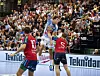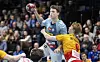 Aaron Mensing im Zweikampf mit GOG-Handballer Jon Andersen, mit dem er in der kommenden Saison bei SønderjyskE zusammenspielen wird – danach geht es für Mensing nach Holstebro.