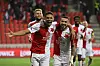 Alexander Bah (links) jubelt über sein erstes Tor für Slavia Prag.