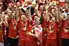 Die rote Wand: Die dänischen Handballer bedanken sich bei dem tollen Publikum bei der Handall-WM im Boxen in Herning.