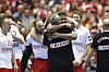 Freudentränen bei Mads Mensah Larsen und Trainer Nikolaj Jacobsen – "Mannschaftskameraden" bei den Rhein-Neckar Löwen.