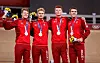 Lasse Norman Hansen, Niklas Larsen, Frederik Rodenberg und Rasmus Lund bei der Siegerehrung.